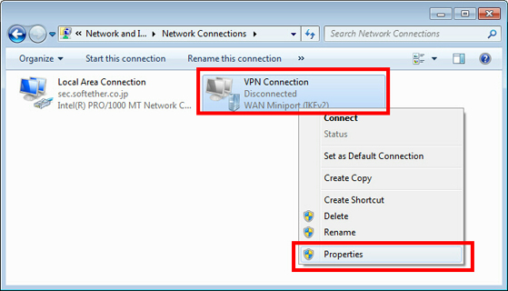 Double-click the created VPN connection setting, the